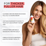 • Supports hair follicles for a rejuvenated and healthier-looking scalp and hair, increasing appearance of hair density.
